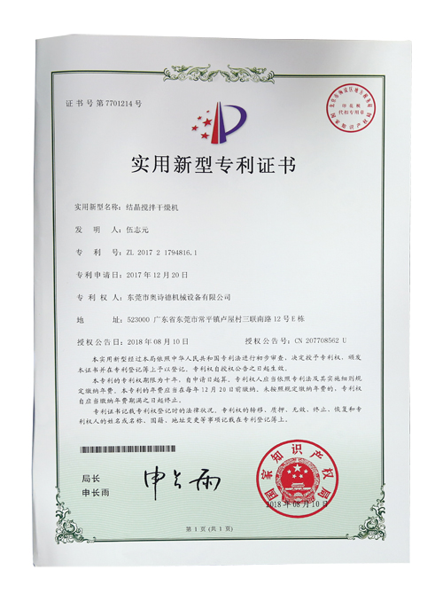 蜂巢轉(zhuǎn)輪式三機(jī)一體除濕干燥機(jī)高新技術(shù)產(chǎn)品證書